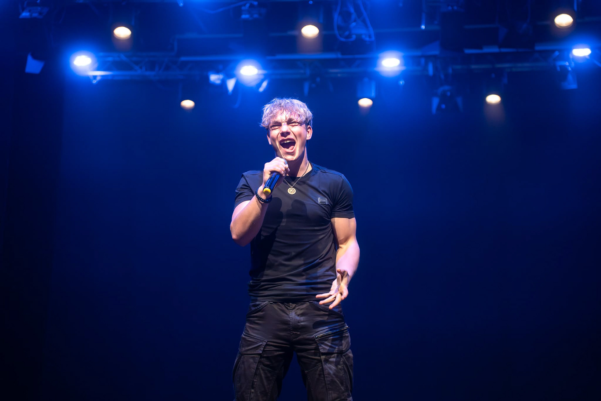 The stage is dark, the silence thick and deep,